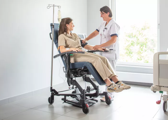 Il est essentiel que le fauteuil offre un confort d'assise prolongé pour les personnes qui ont besoin de soins de longue durée. Les fauteuils de soin doivent donc présenter toutes les qualités et toutes les fonctions d’un bon fauteuil relax. Ils doivent pouvoir offrir le repos nécessaire aux personnes âgées et aux patients, chez eux, à l’hôpital et en maison de repos. Confort, ergonomie et mobilité sont essentiels. Pour les utilisateurs, mais aussi les prestataires de soins.