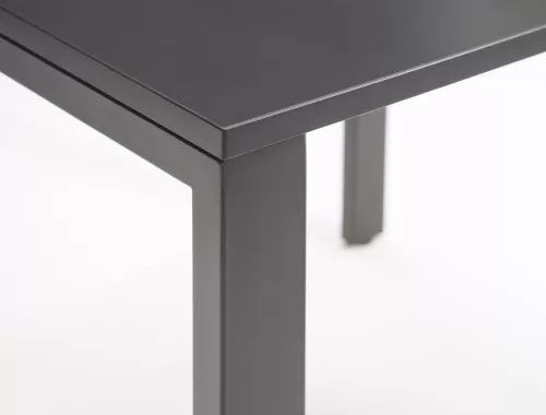 - Piètement élancé en acier (60 x 30 mm), avec profils finition époxy en retrait, fixés sur le bord du plateau (avec pieds réglables, pour compenser les irrégularités du sol)