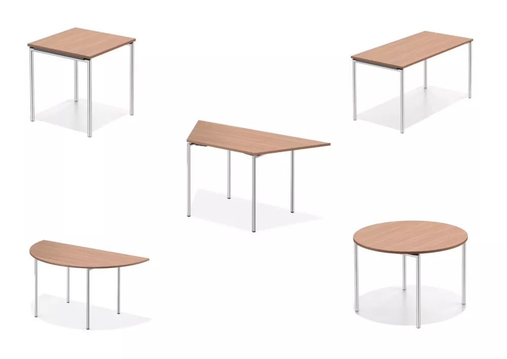 Disponible en différentes tailles et formes, du carré au rond. Juxtaposez différentes formes pour créer une grande surface de table. Idéal pour les grands espaces, salles de réunion ou espaces de vie. Disponible dans un large choix de coloris.