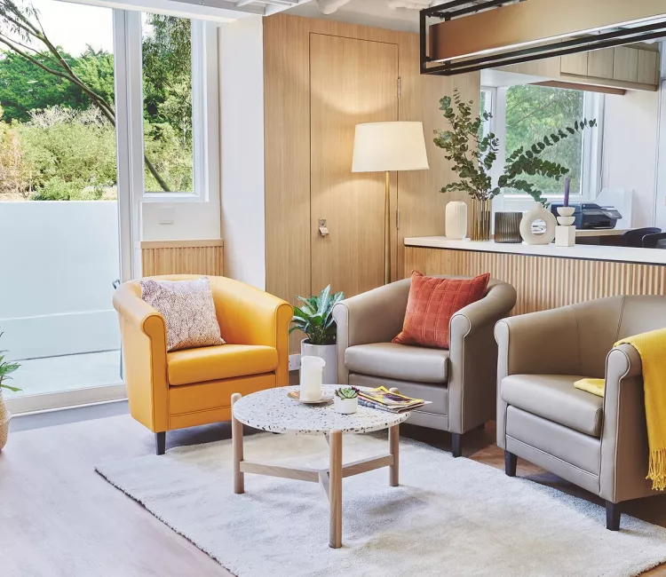 Le mobilier reflète également cette pensée. Les différents intérieurs créent tous une atmosphère conviviale et chaleureuse, tout en étant modernes et fonctionnels. Les tons de bois clair et les tissus chauds et clairs créent un jeu de couleurs frais. Chaque pièce a également reçu un mobilier différent, afin de souligner davantage la fonction de chaque pièce. Qu'il s'agisse de la bibliothèque, du restaurant, du club des résidents..