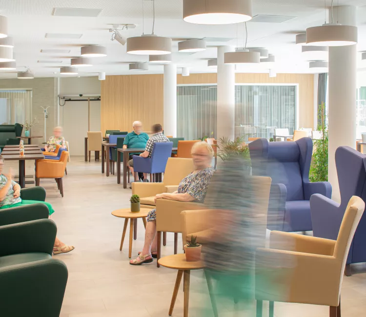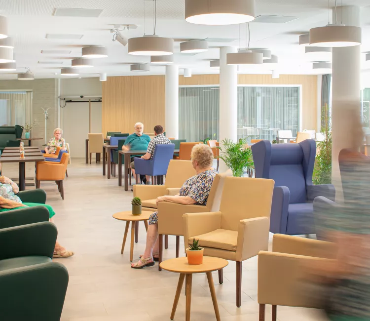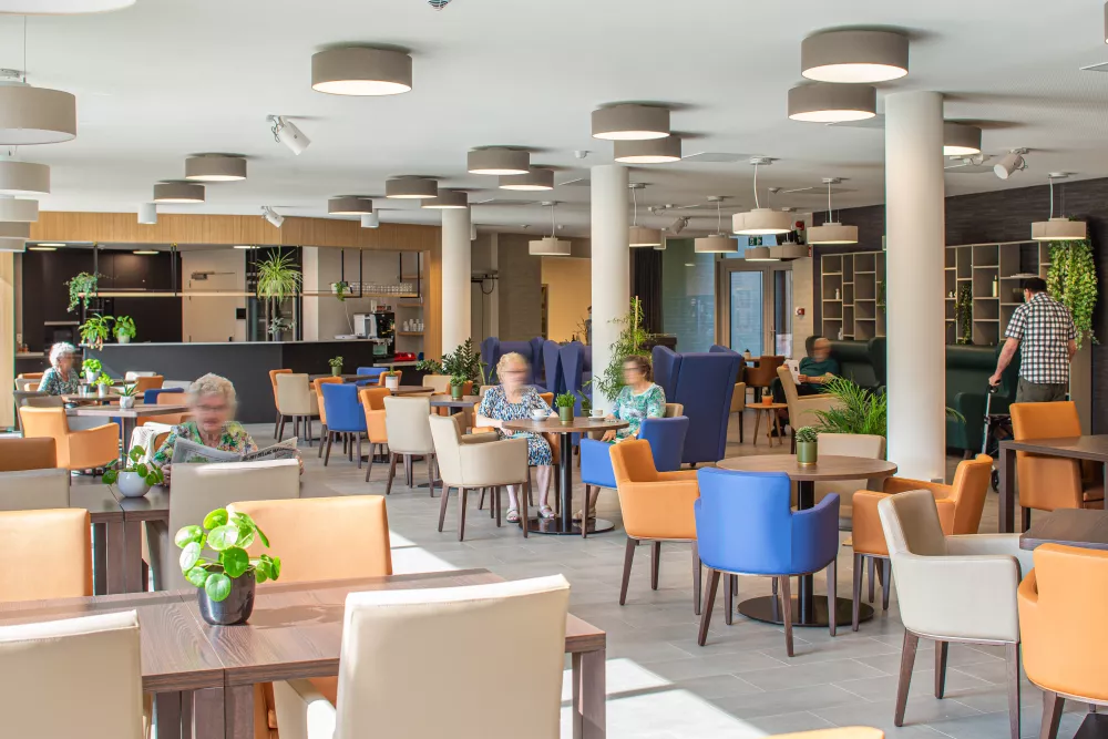 Grâce à différentes réunions, les résidents, le personnel et les proches ont été consultés sur le fonctionnement du nouveau bâtiment et de son exploitation. Il en est résulté un bâtiment destiné à l’habitat à petite échelle, où plusieurs petits groupes d’habitation ont été créés. Ceux-ci sont composés de 10 chambres, d’une salle de séjour privée avec salon, cuisine et salle à manger, et d’une pe-tite terrasse.